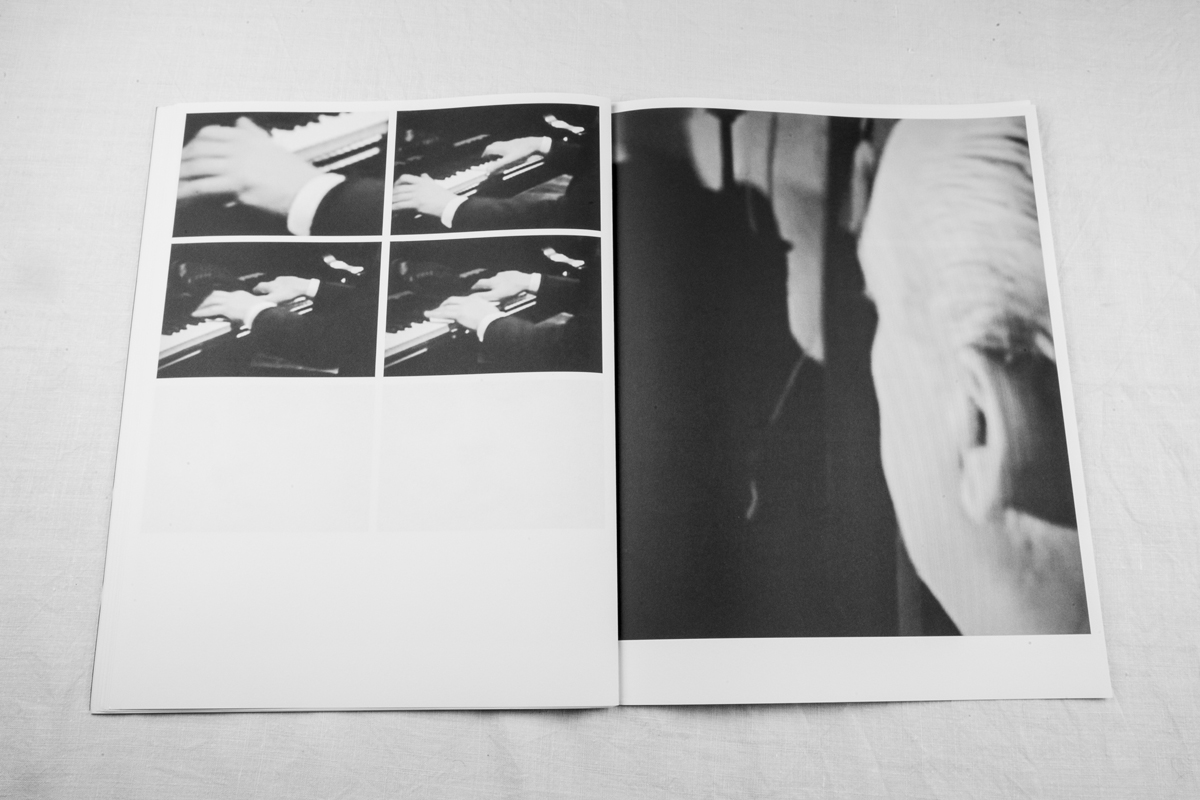 Michelangeli, uomo schivo, isolato, credente, dedica la sua intera vita al perfezionamento della forma che è veicolo di senso e lascito storico. Il libro si affida principalmente non alla ritrattistica o alla biografia per fotografie del pianista, ma alla posizione e alla forma che il rettangolo fotografico occupa nelle pagine del libro. La mancanza di rilegatura permette di guardare la pagina sia nella sequenza e nell’ordine imposto dello sfoglio sia nella sua autonomia, nella sua singolarità, se estratta e separata dal libro. Nel primo caso le immagini di due quartini si affacciano creando, a seconda, armonie o dissonanze casuali; nel secondo caso il quartino aperto riporta a una simmetria formale indisturbata, chiusa. Il libro è un tentativo di ricercare della logica delle forme e delle loro evoluzioni.