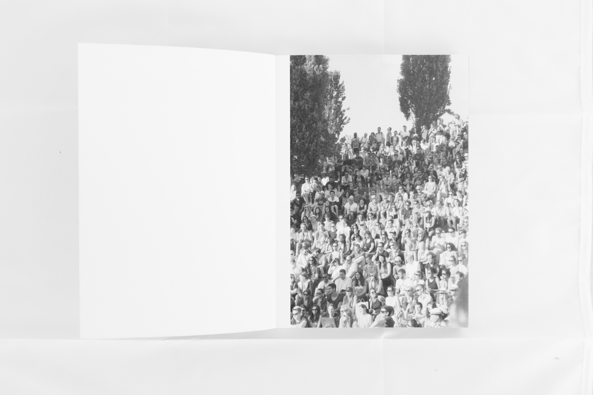 I took five photographs of the “public”. The individual faces were neither seen nor perceived, they simply emerged from the photographic recording; they presented themselves to ask, to question. They detached from the background to reach us, the interlocutor. From being undifferentiated units of a collective name they have become personal names.