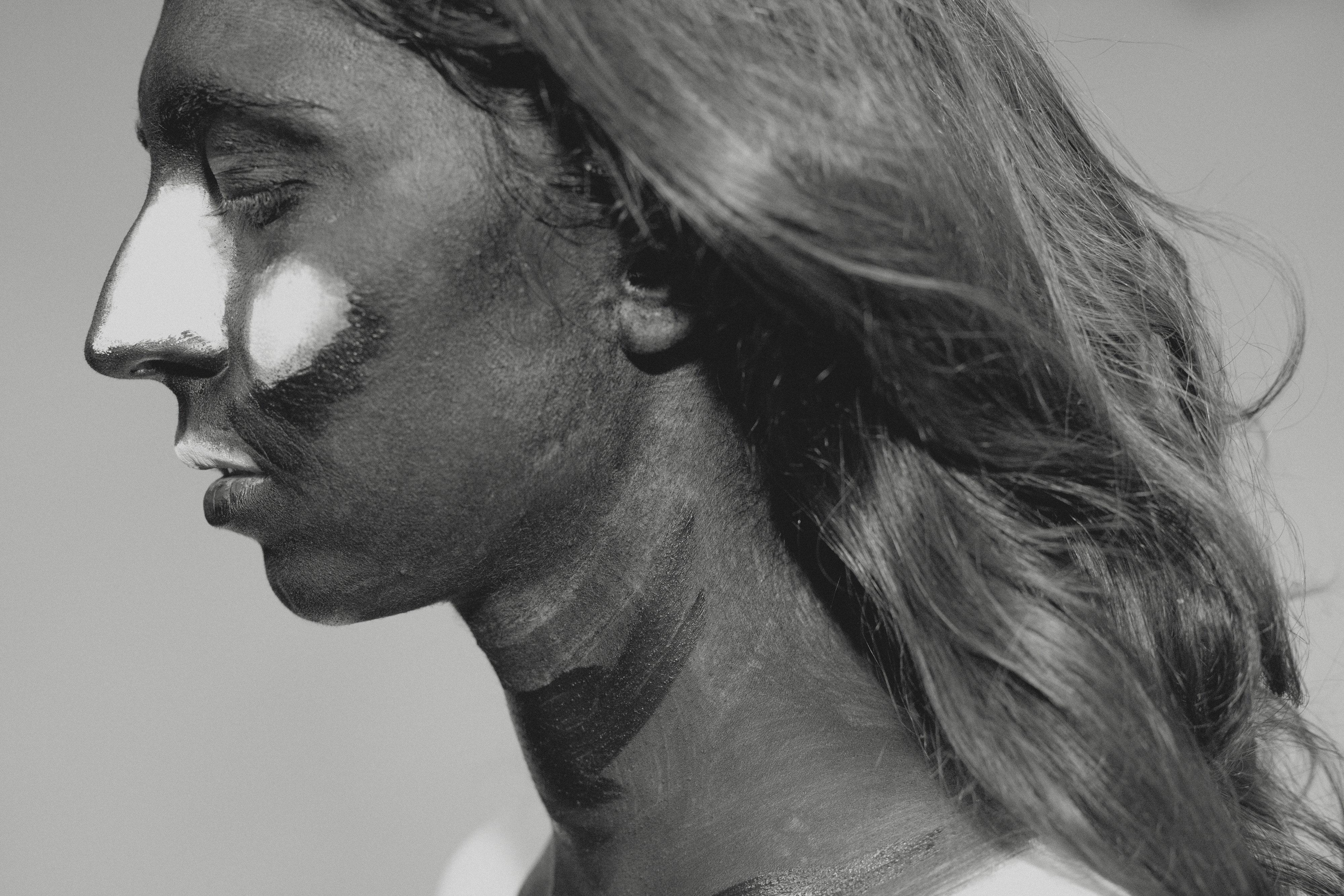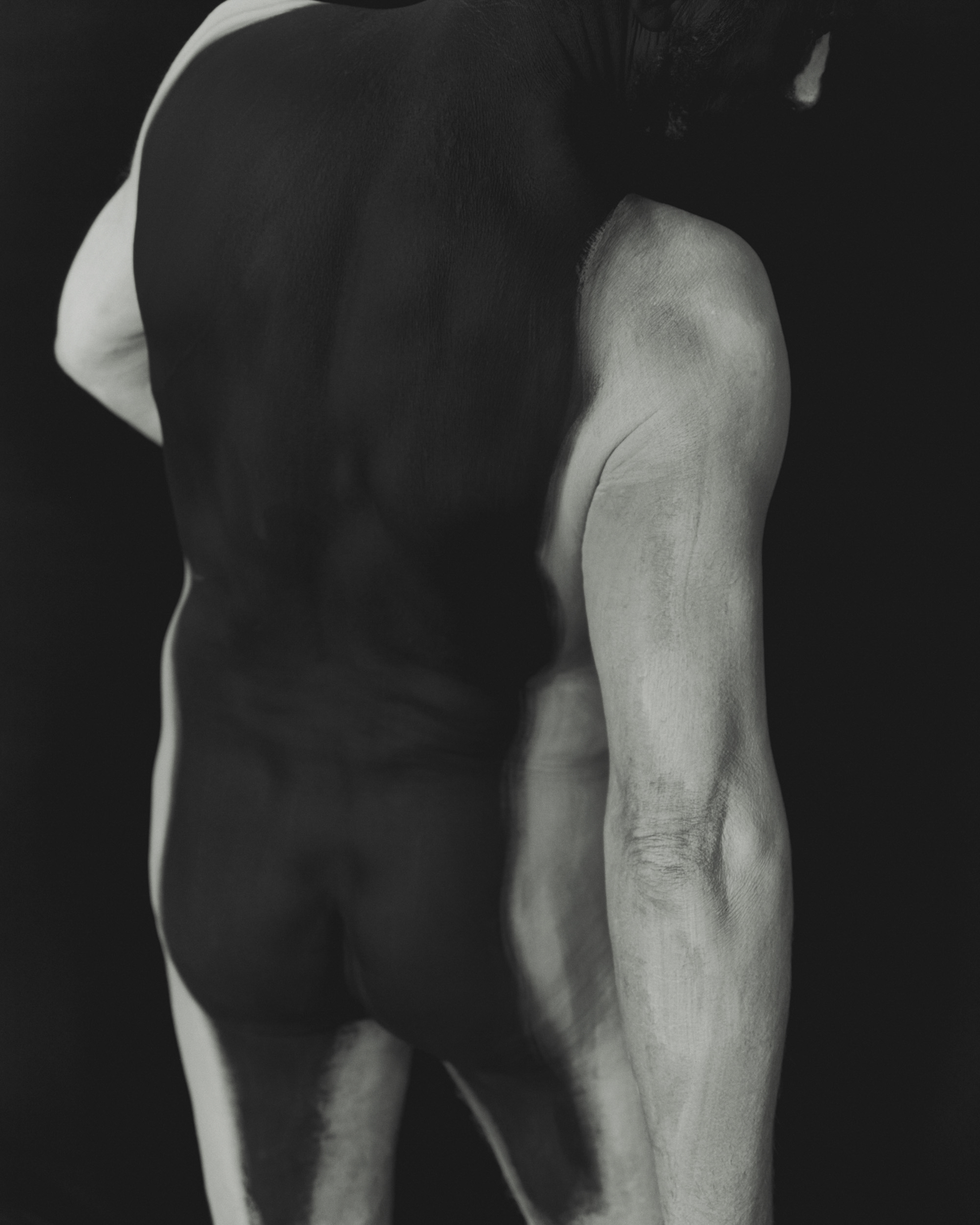 With this work we want to verify how the process of direct self-observation occurs and what the final empirical results are. Through the use of volunteers and preparation sessions, makeup, and photographic shooting, we recreated conditions in which the subjects, observing themselves, become aware of the directly visible parts of their body without the aid of mirrors or other tools. Volunteers were asked to paint the visible parts of their body white and the invisible parts black. As shown in the photographs, the visible areas of one’s face are limited compared to the invisible ones. And surprisingly the very part of our body to which our personality and specificity are associated, the face, is less visible to ourselves than other parts. We are mostly unaware of how our face presents itself and how it reacts to external stimuli. This is, in itself, a paradoxical condition. The goal of this project is, starting from the body mapping obtained by coloring parts of the body, to reflect on the limited nature of our direct vision of the body and, conversely, to emphasize the reconstructive function of the psyche to achieve a total figure of oneself based on information not necessarily coming from our eyes. Although this integrated and multimodal self-reconstruction is never detailed, definitive, or crystal clear, it remains pragmatically functional.
