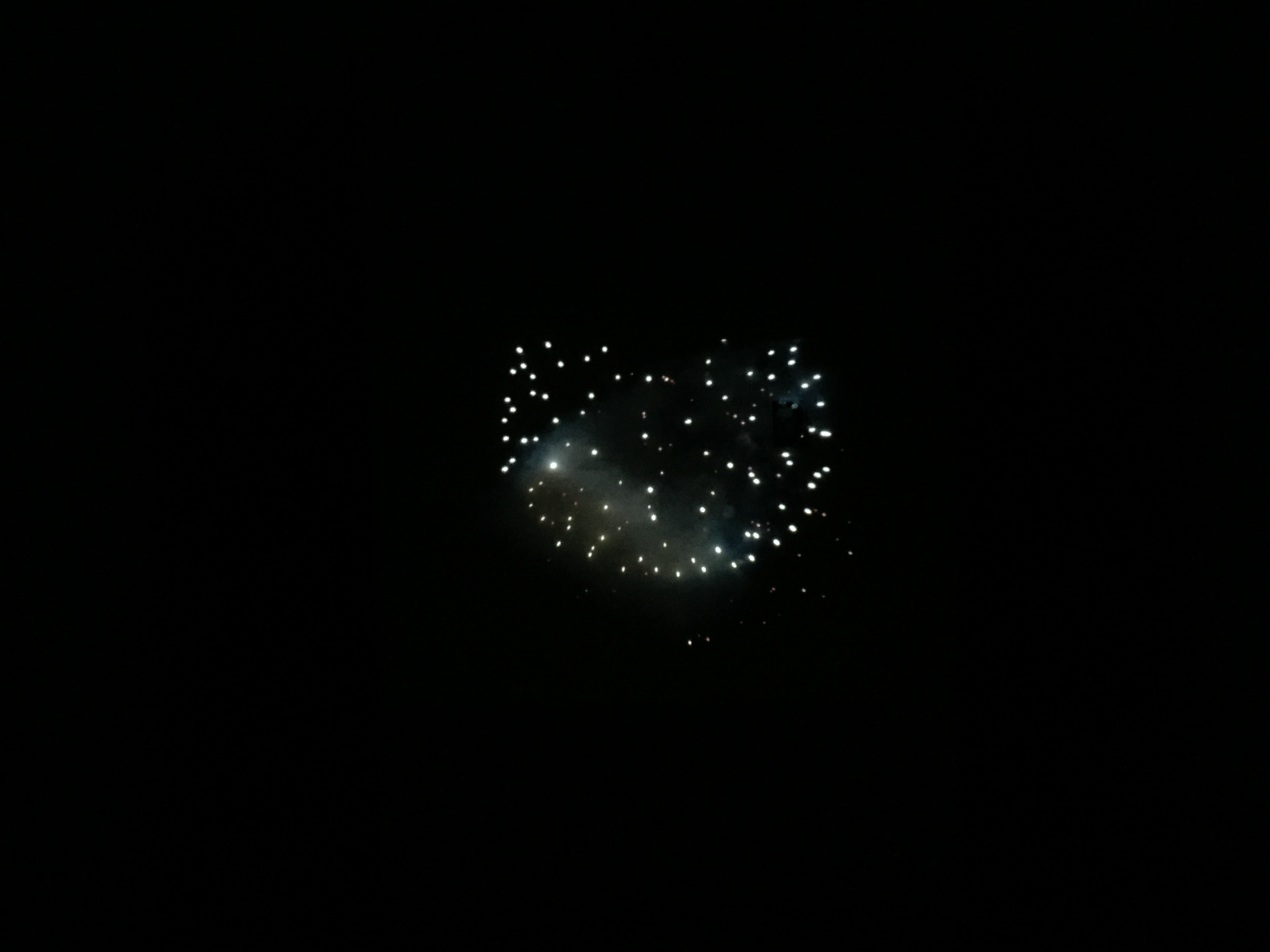 The analogic print – a static portrait of an austere woman – personifies the liminal universe that, according to the author, is excluded from the ‘photographic canon’ but exists and flows incessantly beside it. The impossibility to gain a clear and uniform vision of such a world is epitomized by the projection that, while persisting over the print, both reveals and conceals the woman’s face in the dark. The irregular rhythm depends on the variations of brightness of the video, a slow motion recording of a night scene with fireworks. (Paola Paleari)